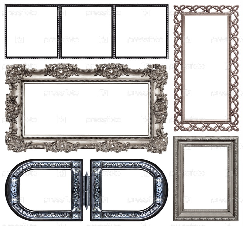 Набор серебряных рам для картин, зеркал или фотографий, изолированных на белом фоне