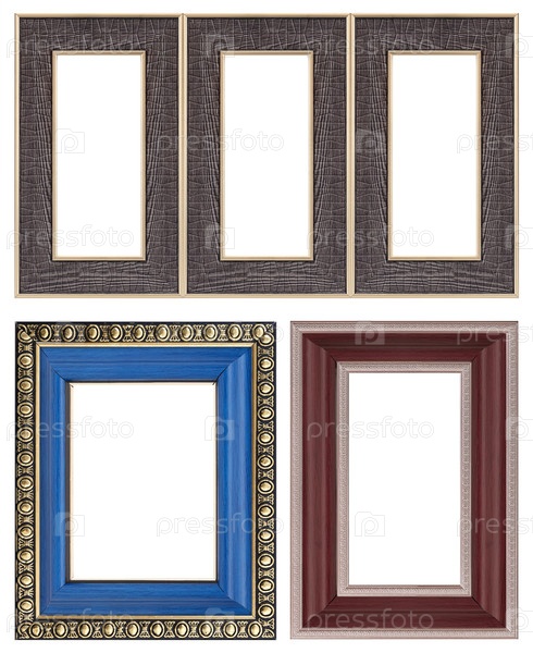 Набор деревянных рам для картин, зеркал или фотографий, изолированных на белом фоне