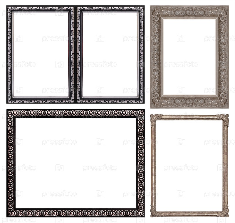 Набор серебряных рам для картин, зеркал или фотографий, изолированных на белом фоне