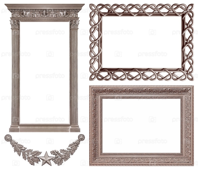 Набор серебряных рам для картин, зеркал или фотографий, изолированных на белом фоне