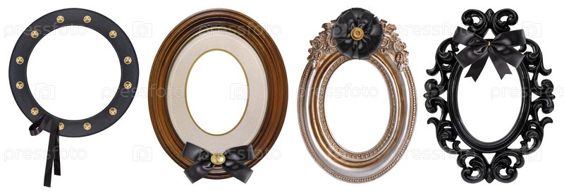 Набор рамок с черной траурной лентой для картин, зеркал или фотографий, изолированных на белом фоне