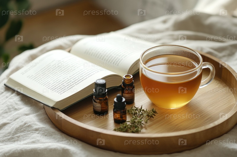 Расслабление после обеда с травяным чаем, эфирными маслами и хорошей книгой в уютной обстановке