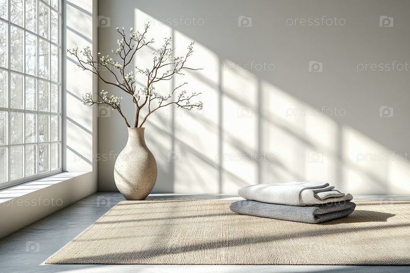 Солнечная минималистская комната с татами и безмятежными элементами декора для спокойствия