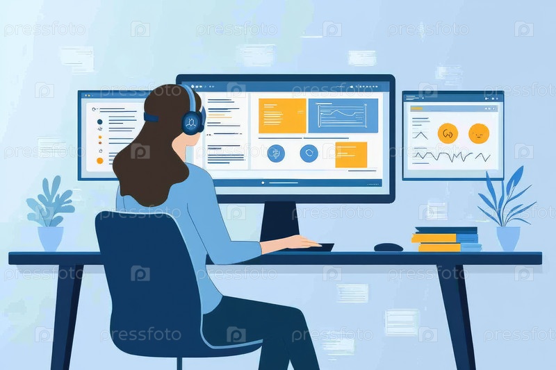Дизайнер Neuro-UX анализирует отзывы пользователей в режиме реального времени в минималистичном рабочем пространстве