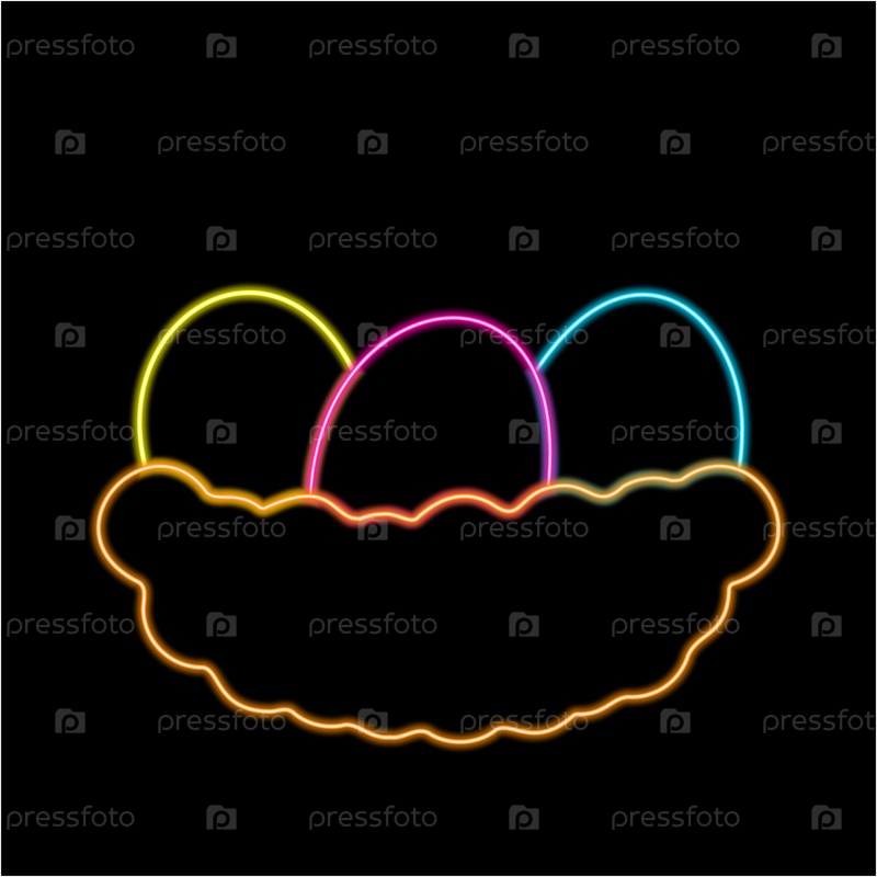 Корзина с пасхальными красочными яйцами в неоновом эффекте