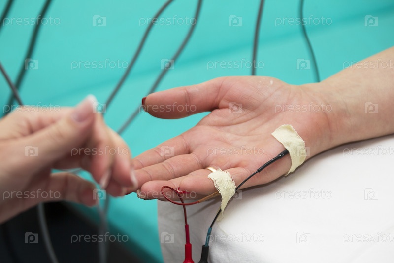 На руках у пациента сенсоры. Диагностика с помощью электронных устройств
