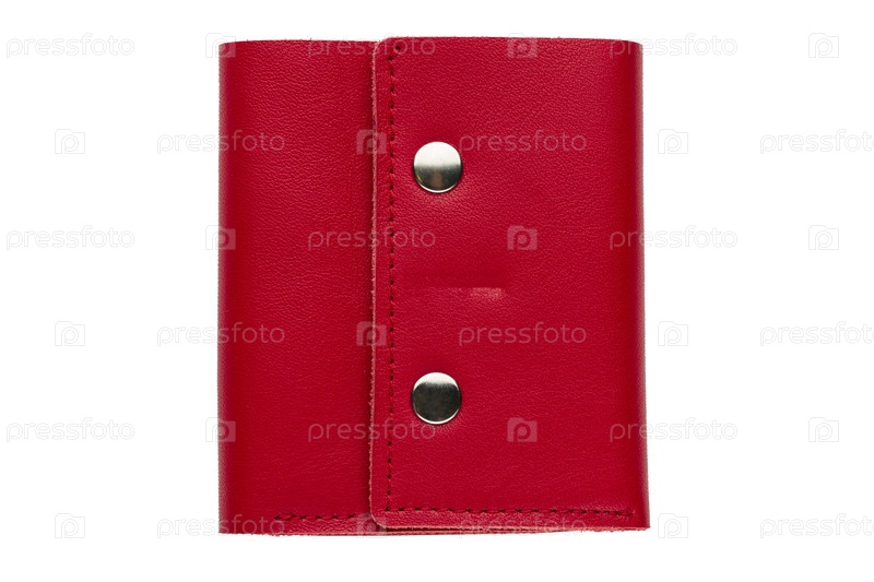 Красный кожаный кошелек на белом фоне крупным планом. Компактный кошелек