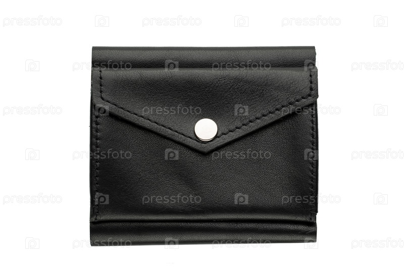 Черный мужской кошелек на белом фоне. Компактный кошелек