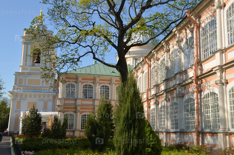 Территория Александро-Невской лавры в Санкт-Петербурге: Троицкий собор в стиле раннего классицизма и Федоровский корпус в стиле петровского барокко