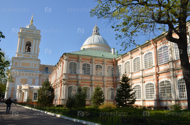 Территория Александро-Невской лавры в Санкт-Петербурге: Троицкий собор в стиле раннего классицизма и Федоровский корпус в стиле петровского барокко