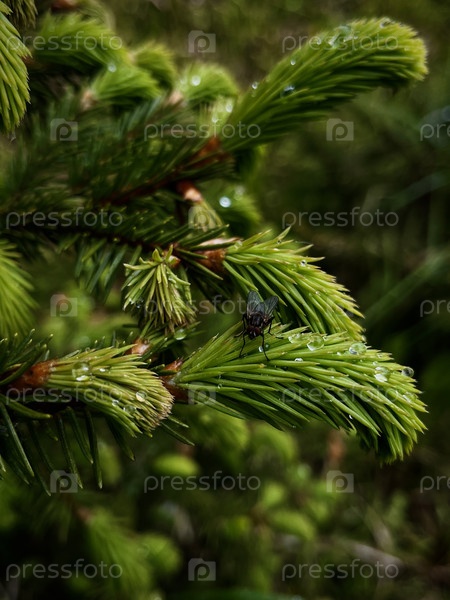 Муха на лапках ели