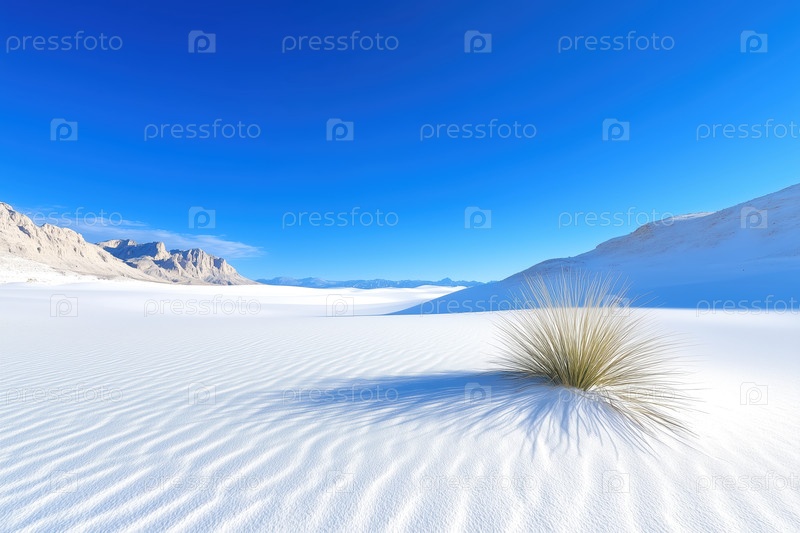 Засушливый пейзаж с белыми дюнами и скалами вдали