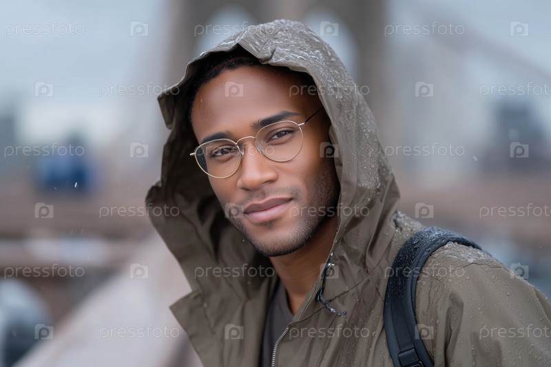 Портрет красивого афроамериканца в плаще и очках