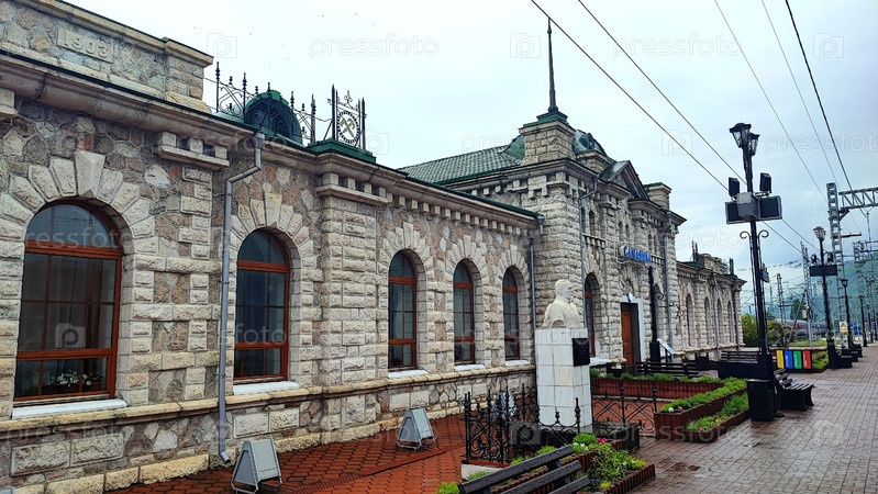 Слюдянка, действующий железнодорожный вокзал из белого мрамора, бюст Хилкова М.И., Иркутская область Слюдянка, an active railway station made of white marble, Irkutsk region