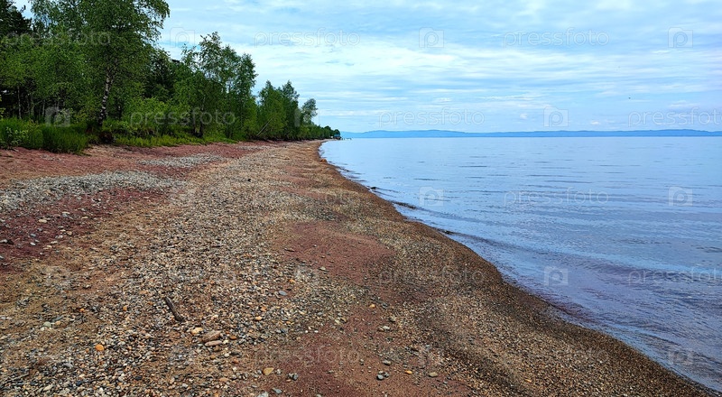 Гранатный пляж с красным песком на озере Байкал, Байкальск, Россия