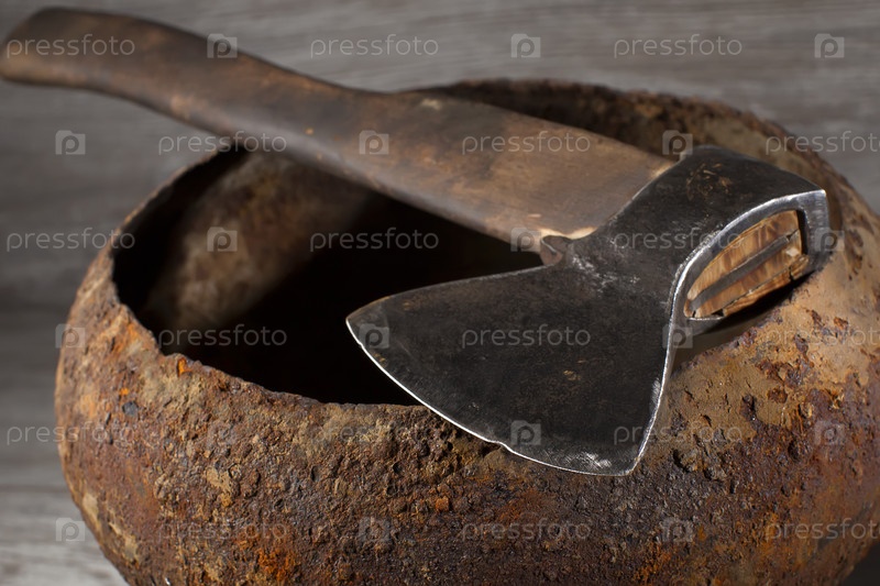 Топор на старом ржавом боулере