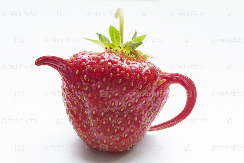 Манипуляция клубничным чайником - белый фон