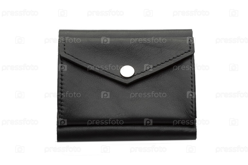 Черный мужской кошелек на белом фоне. Компактный кошелек