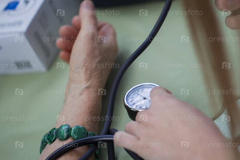 Рука врача измеряет давление