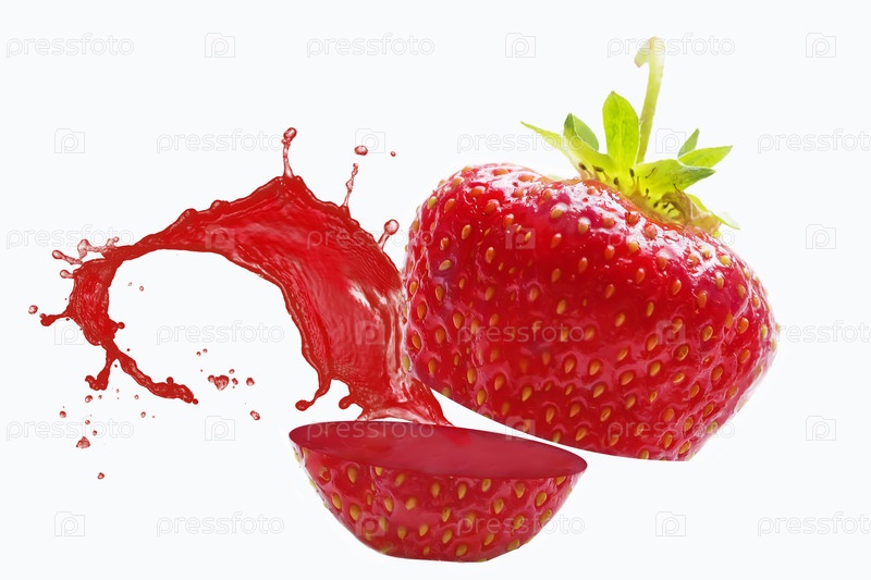 Клубника нарезана с плещущимся соком на белом фоне