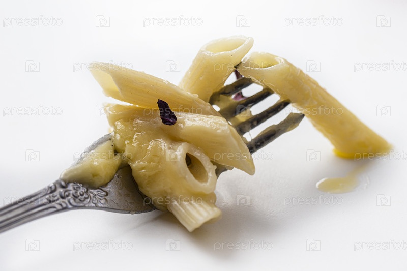 Макароны с сыром на вилке крупным планом. Готовим итальянскую пасту