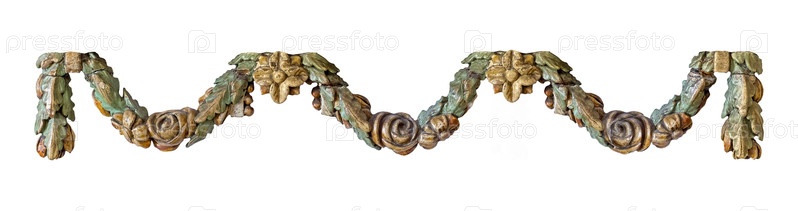 Деревянные цветочные гирлянды изолированы на белом фоне. Элемент дизайна с обрезкой пути