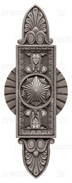 Серебряный декоративный элемент с цветочным рисунком выделен на белом фоне. Элемент дизайна с обрезкой пути