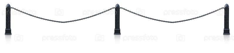 Кованая металлическая цепная ограда изолирована на белом фоне. Элемент дизайна с обрезкой пути