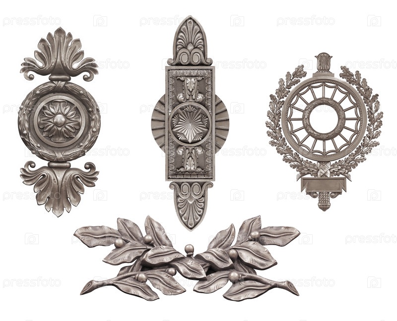 Набор серебряных декоративных элементов, выделенных на белом фоне