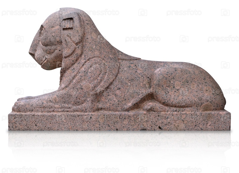 Статуя каменного льва изолирована на белом фоне. Элемент дизайна с обрезкой пути