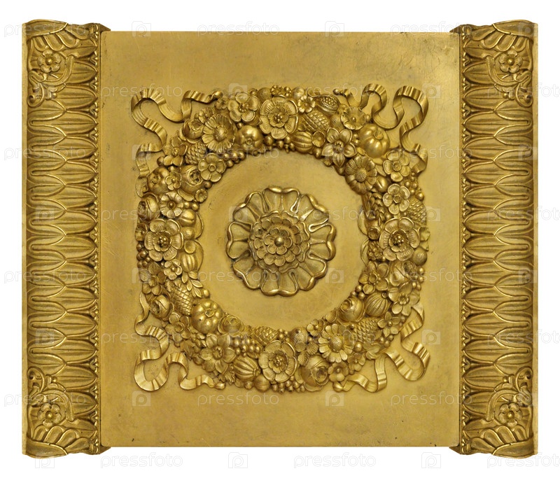 Золотой декоративный элемент с цветочным рисунком выделен на белом фоне. Элемент дизайна с обрезкой пути