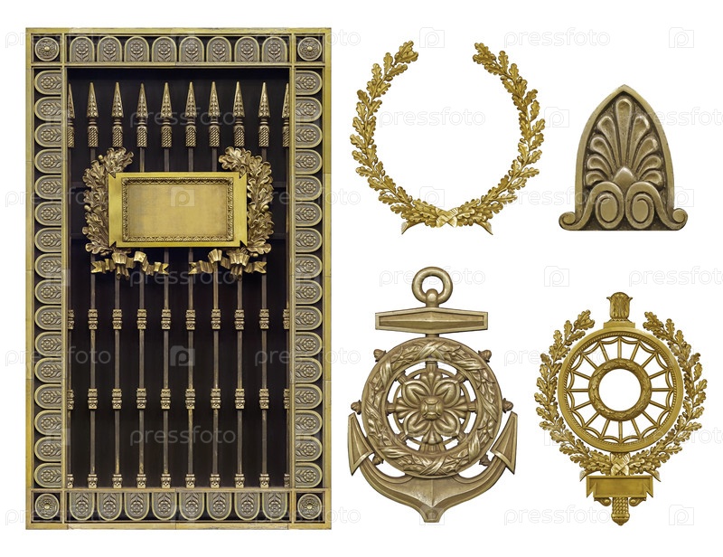 Набор золотых декоративных элементов изолирован на белом фоне