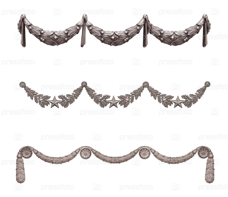 Серебряные цветочные гирлянды, изолированные на белом фоне