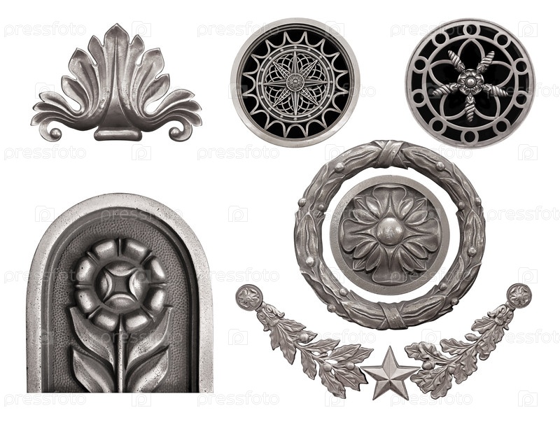 Набор серебряных декоративных элементов, выделенных на белом фоне