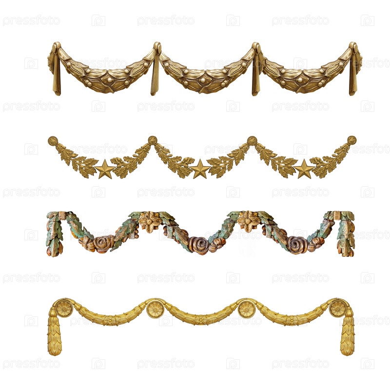 Набор золотых цветочных гирлянд, изолированных на белом фоне