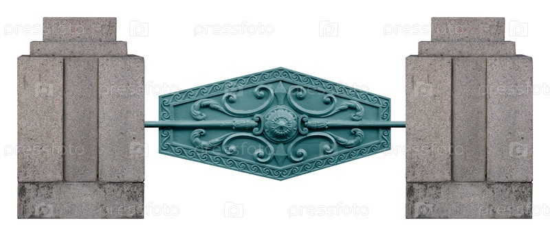 Кованый металлический и гранитный забор изолирован на белом фоне