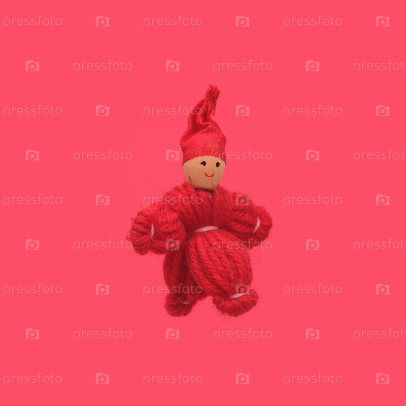 Красный традиционный маленький человек, сделанный из нитей, изолированных на красном фоне