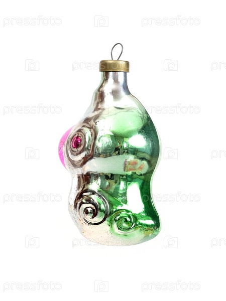 Стеклянная рождественская игрушка (как попугай) изолирована на белом фоне