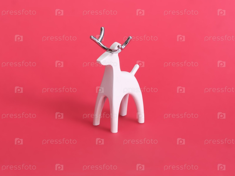 Белый рождественский олень Рудольф изолирован на красном фоне. Элемент дизайна с обрезкой пути