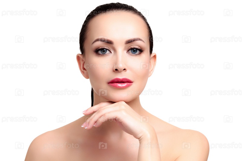 Красивая женщина с гладкой и мягкой кожей, изолированная на белом фоне