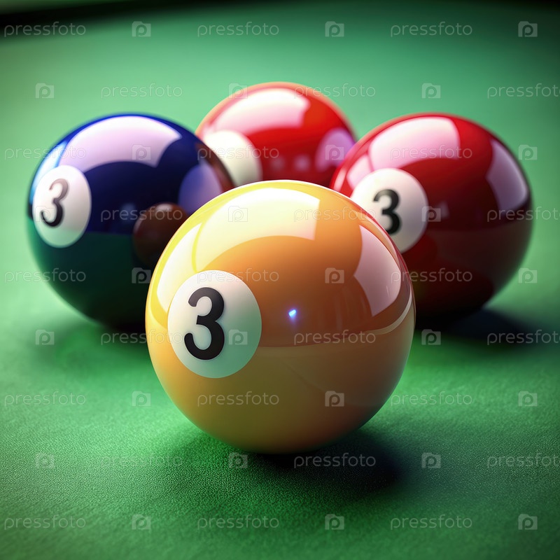 Яркие сферы: бильярдные шары готовы к действию на зеленом ощущении Генерирующий ИИ