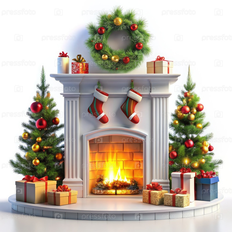 Волшебный камин: праздничный показ рождественских чулок. Генерирующий ИИ