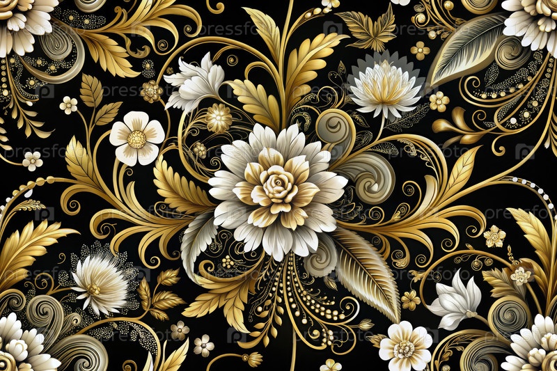 Полуночные цветы: яркий танец золота и белого. Генерирующий ИИ