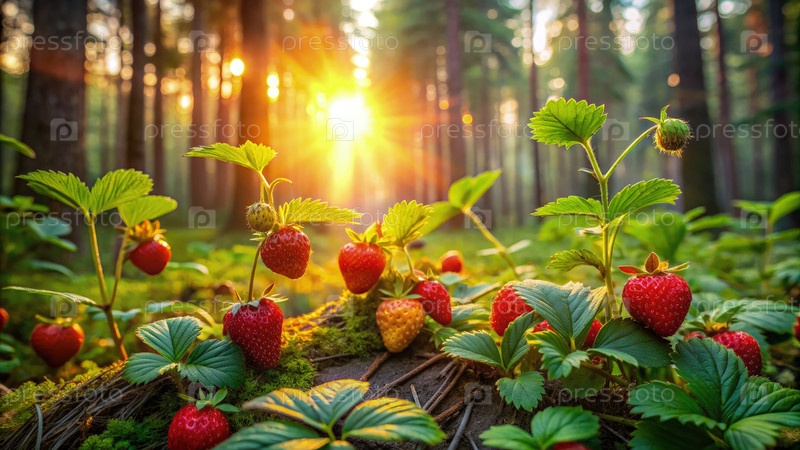 Дикая клубника, растущая на упавшем лесу. Генерирующий ИИ