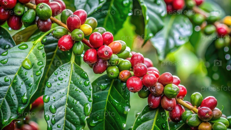 Кофейные зерна растут на кофейном дереве. Генерирующий ИИ