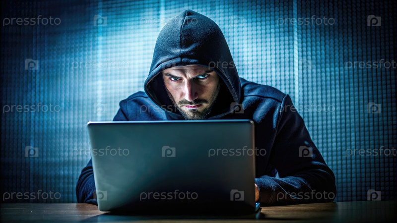 Человек в Гуди с ноутбуком. Генерирующий ИИ