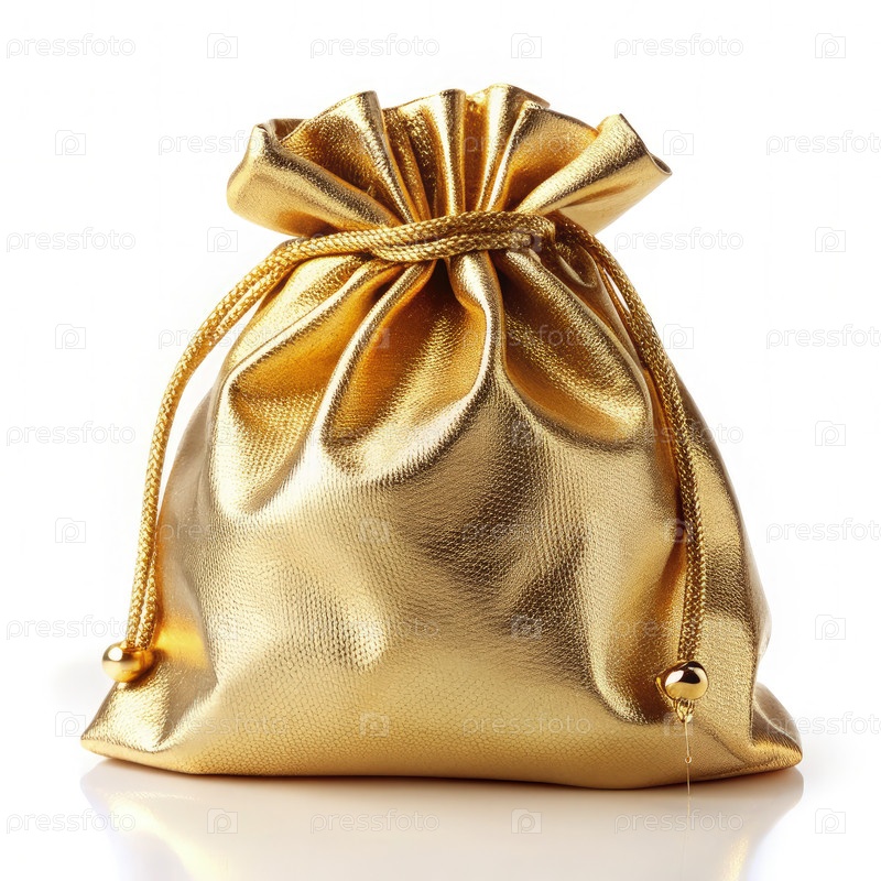 Золотая сумка на белом фоне. Генерирующий ИИ