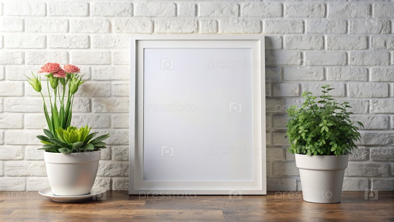 Серенная зелень: три растения рядом с белым каркасом. Генерирующий ИИ