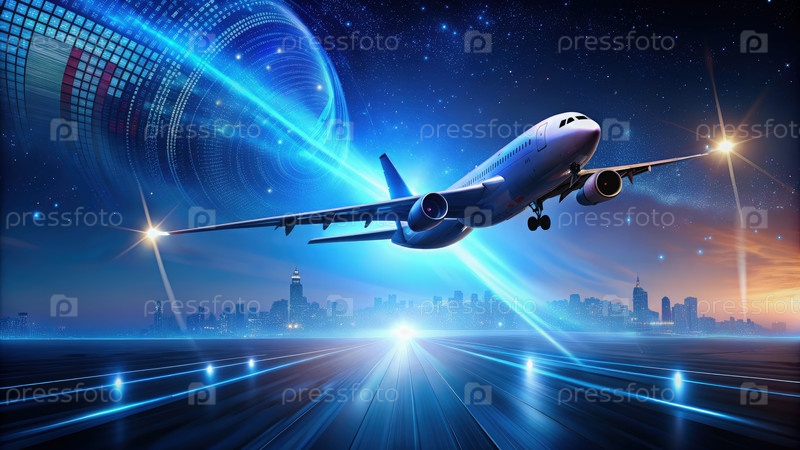 Полуночная безмятежность: самолет, парящий над городскими огнями Генерирующий ИИ