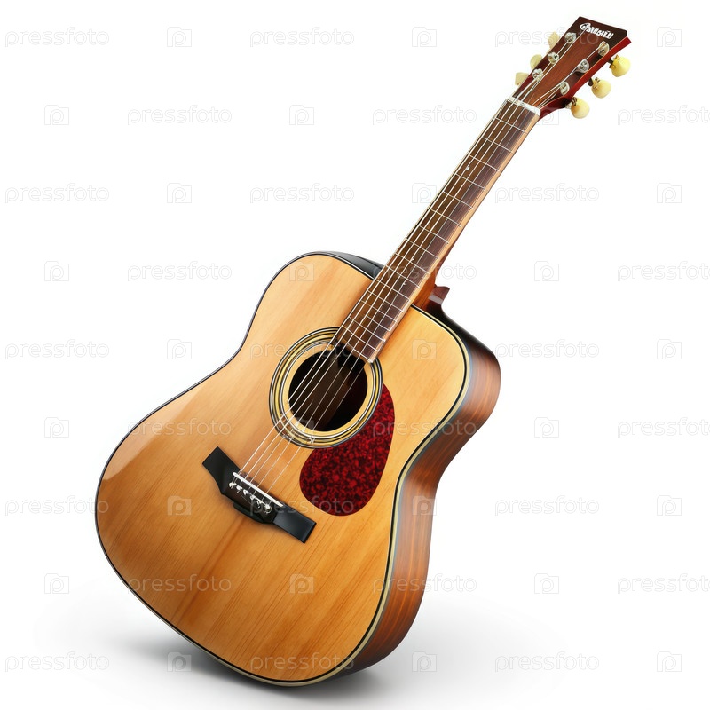 Акустическая гитара с деревянным корпусом. Генерирующий ИИ